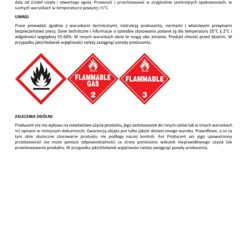 Produkt pod ciśnieniem. Należy chronić przed bezpośrednim oddziaływaniem promieni słonecznych, przechowywać z dala od źródeł ciepła i otwartego ognia. Przewozić i przechowywać w oryginalnie zamkniętych opakowaniach, w suchych warunkach w temperaturze powyżej +5°C.