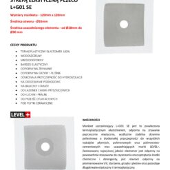 Mankiet uszczelniający L+G01 SE jest to powleczona termoplastycznym elastomerem, odporna na zrywanie poprzecznie elastyczna, wzdłużnie stabilna dzianina poliestrowa o doskonałej przyczepności do wszystkich rodzajów płynnych, polimerowych oraz polimerowo-cementowych mas uszczelniających marki LEVEL+. Zastosowany najwyższej jakości elastomer jest odporny na powszechnie stosowane do czyszczenia oraz sprzątania środki chemiczne i detergenty, jest również odporny na promieniowanie UV, starzenie, grzyby i pleśnie oraz pozostaje długotrwale elastyczny i termoplastyczny.