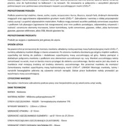 Prace prowadzić zgodnie z warunkami technicznymi, instrukcją producenta, normami i właściwymi przepisami bezpieczeństwa pracy. Dane techniczne i informacje o sposobie stosowania podane są dla temperatury 25°C ± 2°C i wilgotności względnej 55-60%. Produkt chronić przed dziećmi. Producent nie odpowiada za szkody wynikłe z nieumiejętnego lub niezgodnego z przeznaczeniem użycia wyrobu. Przed użyciem zapoznać się ze szczegółowymi warunkami stosowania produktu.