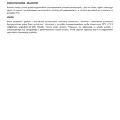 Produkt należy chronić przed bezpośrednim oddziaływaniem promieni słonecznych, z dala od źródeł ciepła i otwartego ognia. Przewozić i przechowywać w oryginalnie zamkniętych opakowaniach, w suchych warunkach w temperaturze powyżej +5°C.