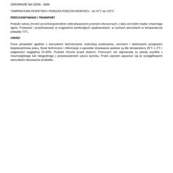 Produkt należy chronić przed bezpośrednim oddziaływaniem promieni słonecznych, z dala od źródeł ciepła i otwartego ognia. Przewozić i przechowywać w oryginalnie zamkniętych opakowaniach, w suchych warunkach w temperaturze powyżej +5°C.