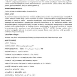 Prace prowadzić zgodnie z warunkami technicznymi, instrukcją producenta, normami i właściwymi przepisami bezpieczeństwa pracy. Dane techniczne i informacje o sposobie stosowania podane są dla temperatury 25°C ± 2°C i wilgotności względnej 55-60%. Produkt chronić przed dziećmi. Producent nie odpowiada za szkody wynikłe z nieumiejętnego lub niezgodnego z przeznaczeniem użycia wyrobu. Przed użyciem zapoznać się ze szczegółowymi warunkami stosowania produktu.