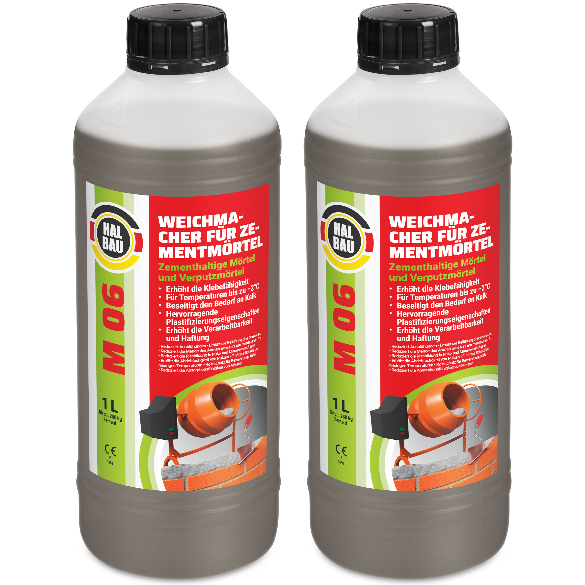 Plastyfikator do zapraw budowlanych 2L Zastępuje wapno w zaprawach murarskich i tynkarskich Dla temperatur do -2°C HALBAU M06