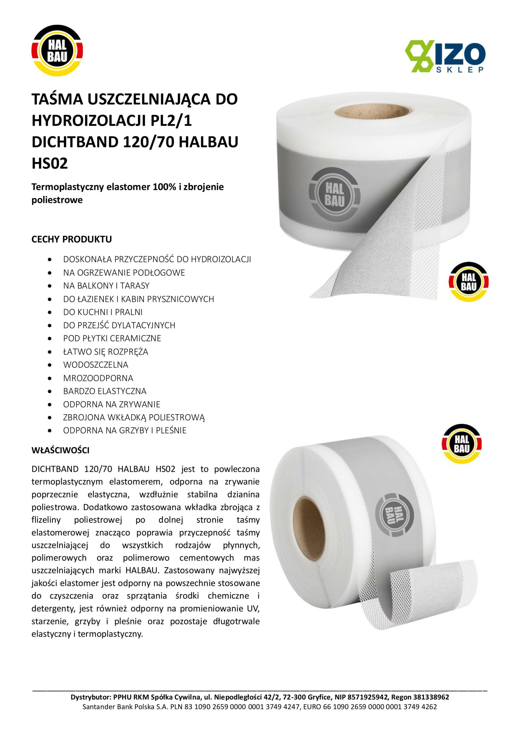 Taśma do Hydroizolacji 120/70 Taśma Uszczelniająca 150 mb Hydroizolacja Łazienka Balkon Taras PL2/1 HALBAU HS02