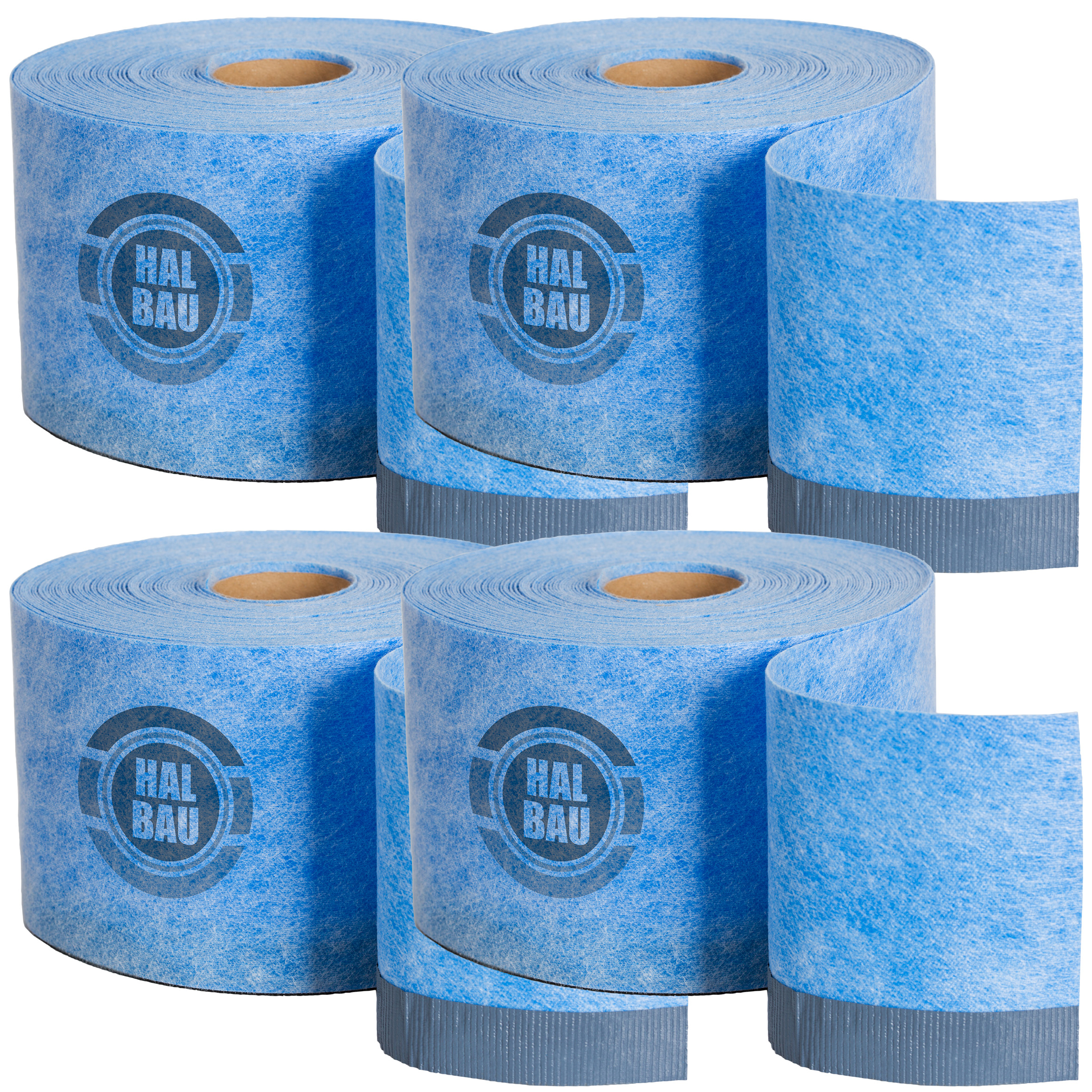 WANNENBAND HALBAU HN05 jest to specjalistyczna, wielowarstwowa, elastyczna taśma hydroizolacyjna – trylaminat w kolorze niebieskim wykonana z najwyższej jakości, poprzecznie elastycznej flizeliny polipropylenowej i wysokiej jakości membrany uszczelniającej w postaci termoplastycznego elastomeru 100%. Zastosowana specjalna flizelina poliestrowa o wysokiej gramaturze po obu stronach rdzenia elastomerowego znacząco poprawia przyczepność taśmy elastomerowej do wszystkich rodzajów płynnych, polimerowych oraz polimerowo cementowych mas uszczelniających HALBAU. Taśma progowo – wannowa WANNENBAND HALBAU HN05 z jednej strony posiada pasek kleju butylowego o szerokości 25mm dzięki któremu można wyeliminować błędy wykonawcze i który czyni montaż taśmy dużo łatwiejszym w porównaniu z taśmami tradycyjnymi. Pasek wysoko lepkiego butylu poprawia szczelność i precyzję wykonania każdego uszczelnienia. Zastosowany najwyższej jakości elastomer jest odporny na powszechnie stosowane do czyszczenia oraz sprzątania środki chemiczne i detergenty, jest również odporny na promieniowanie UV, starzenie, grzyby i pleśnie oraz pozostaje długotrwale elastyczny i termoplastyczny.