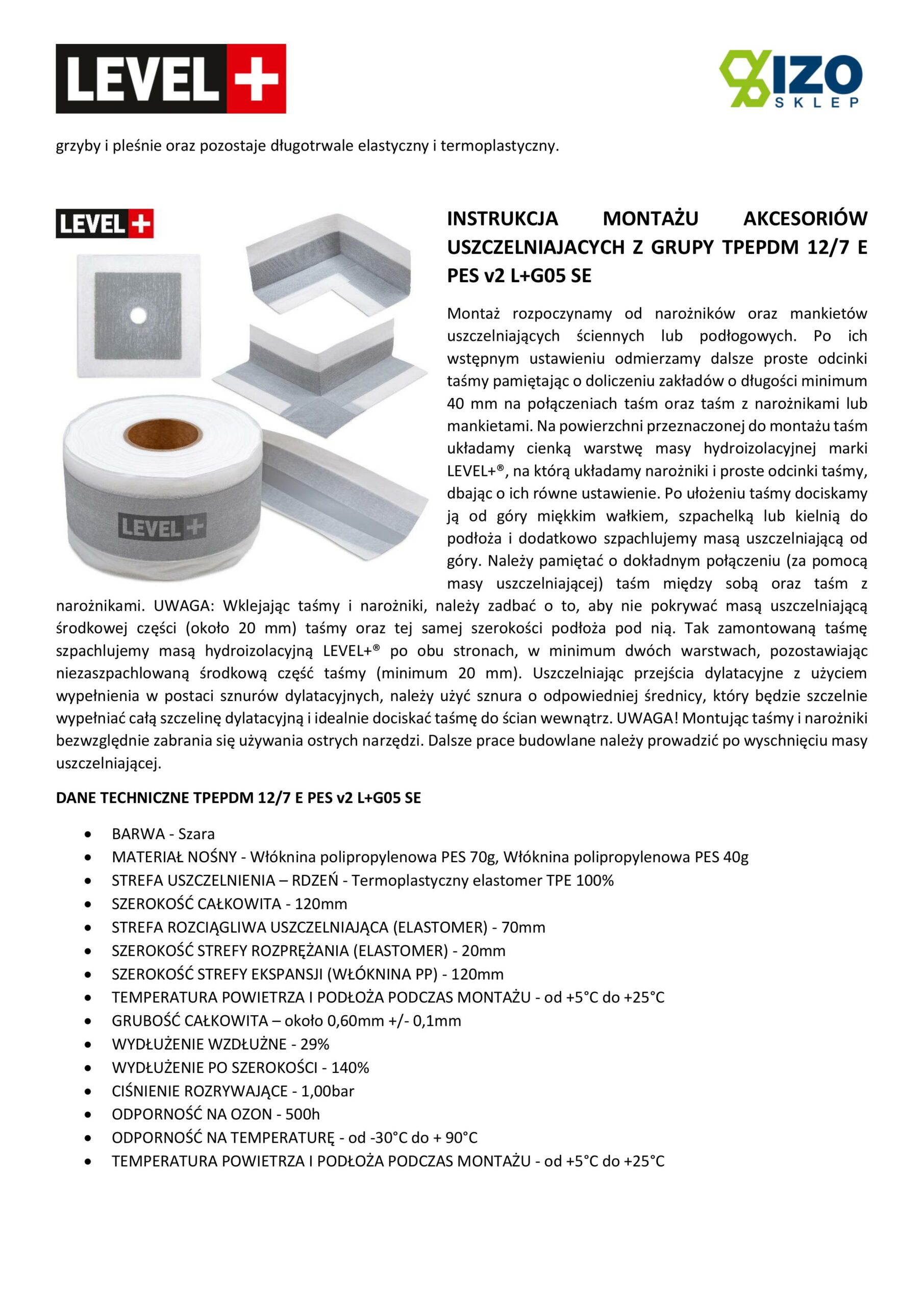 INSTRUKCJA MONTAŻU AKCESORIÓW USZCZELNIAJACYCH Z GRUPY TPEPDM 12/7 E PES v2 L+G05 SE