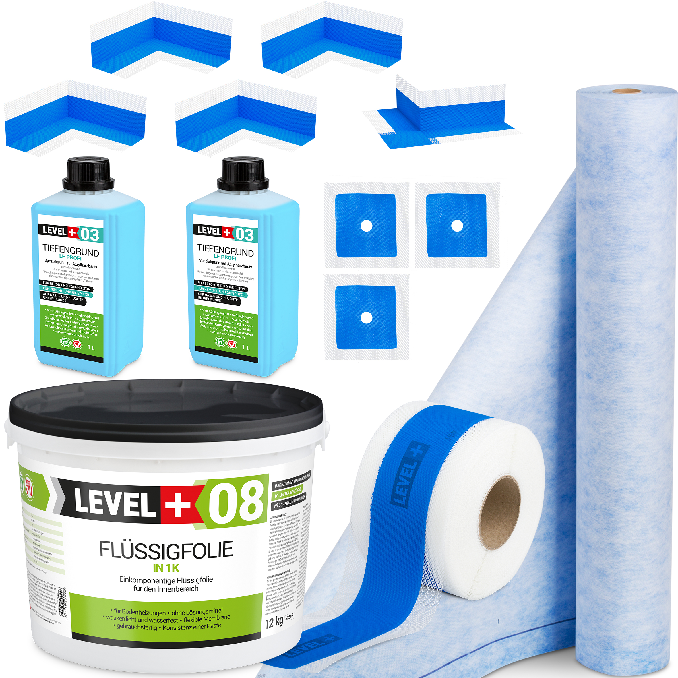Profesjonalny, kompletny zestaw do hydroizolacji łazienek, kabin prysznicowych, wanien, brodzików oraz innych miejsc wewnątrz pomieszczeń narażonych stałe oddziaływanie wody oraz wilgoci na powierzchniach pionowych oraz poziomych