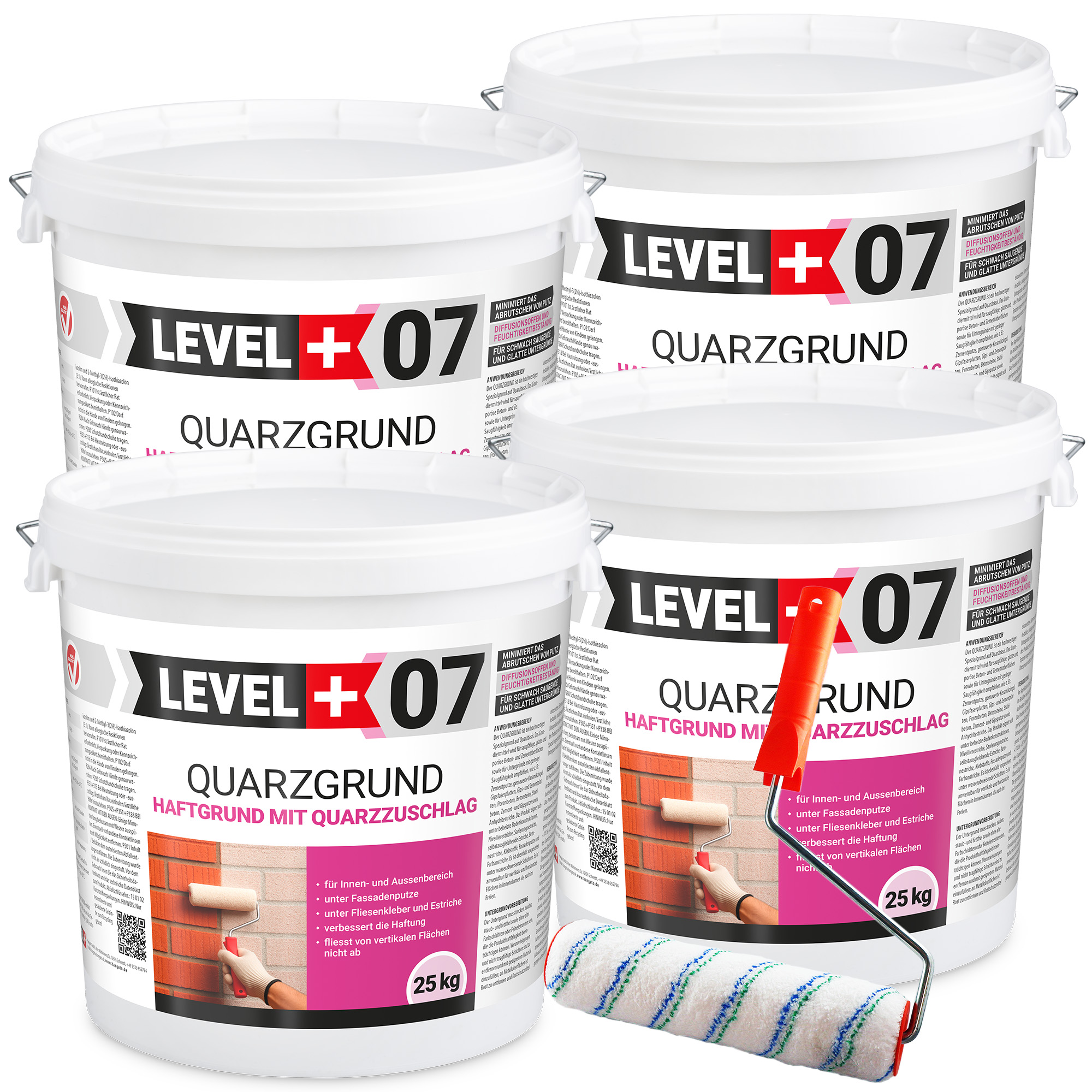 QUARZGRUND L+07 jest specjalnym najwyższej jakości środkiem gruntującym stworzonym na bazie drobnocząsteczkowych lateksów oraz kruszywa kwarcowego. Dzięki zwiększeniu pola powierzchni za pomocą specjalnego kruszywa kwarcowego produkt tworzy warstwę szczepną o bardzo wysokiej przyczepności i porowatości nawet na niechłonnych i gładkich podłożach. Biały kolor gruntu umożliwia stosowanie go pod barwione masy tynkarskie. Zastosowanie gruntu minimalizuje ryzyko wystąpienia przebarwień na tynkach w związku z przedostawaniem się barwników lub szkodliwych związków z podłoża w kolejne nakładane warstwy. Grunt zalecany jest do gładkich powierzchni betonowych lub materiałów o obniżonej chłonności . Quarzgrund zalecany jest do chłonnych, gładkich oraz porowatych powierzchni betonowych – cementowych, oraz do podłoży o obniżonej chłonności takich jak: wyprawy tynkarskie na bazie cementu, cegły ceramiczne murowane, płyty gipsowo-włóknowe, gipsowe i cementowe, beton komórkowy, bloczki betonowe, żelbet, tynki cementowe, gipsowe, podkłady anhydrytowe. Może być stosowany pod ogrzewanie podłogowe, pod masy wyrównujące, naprawcze, samopoziomujące, wylewki betonowe, kleje, tynki elewacyjne i farby. Można stosować do gruntowania podłoża pod wszelkie powłoki hydroizolacyjne. Można stosować na powierzchnie pionowe oraz poziome, wewnątrz oraz na zewnątrz pomieszczeń. Po wyschnięciu tworzy szorstką doskonale przyczepną powłokę idealną pod kolejne nakładane warstwy. Powoduje hydrofobizację podłoża. Produkt paroprzepuszczalny, nie zawiera koalescentów oraz rozpuszczalników, nie wywiera negatywnego wpływu na środowisko naturalne.